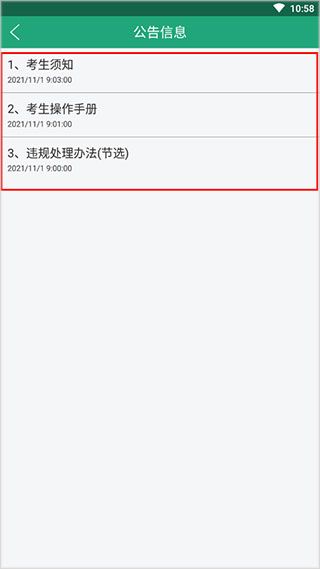 3、这里有考生须知、考生操作手册、违规处理方法等可以阅读;