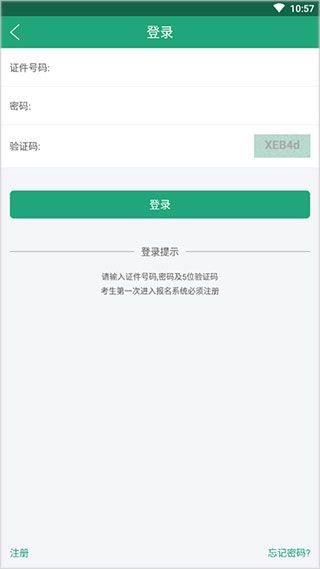 输入证件号码、密码、验证码,登录网上报名系统。