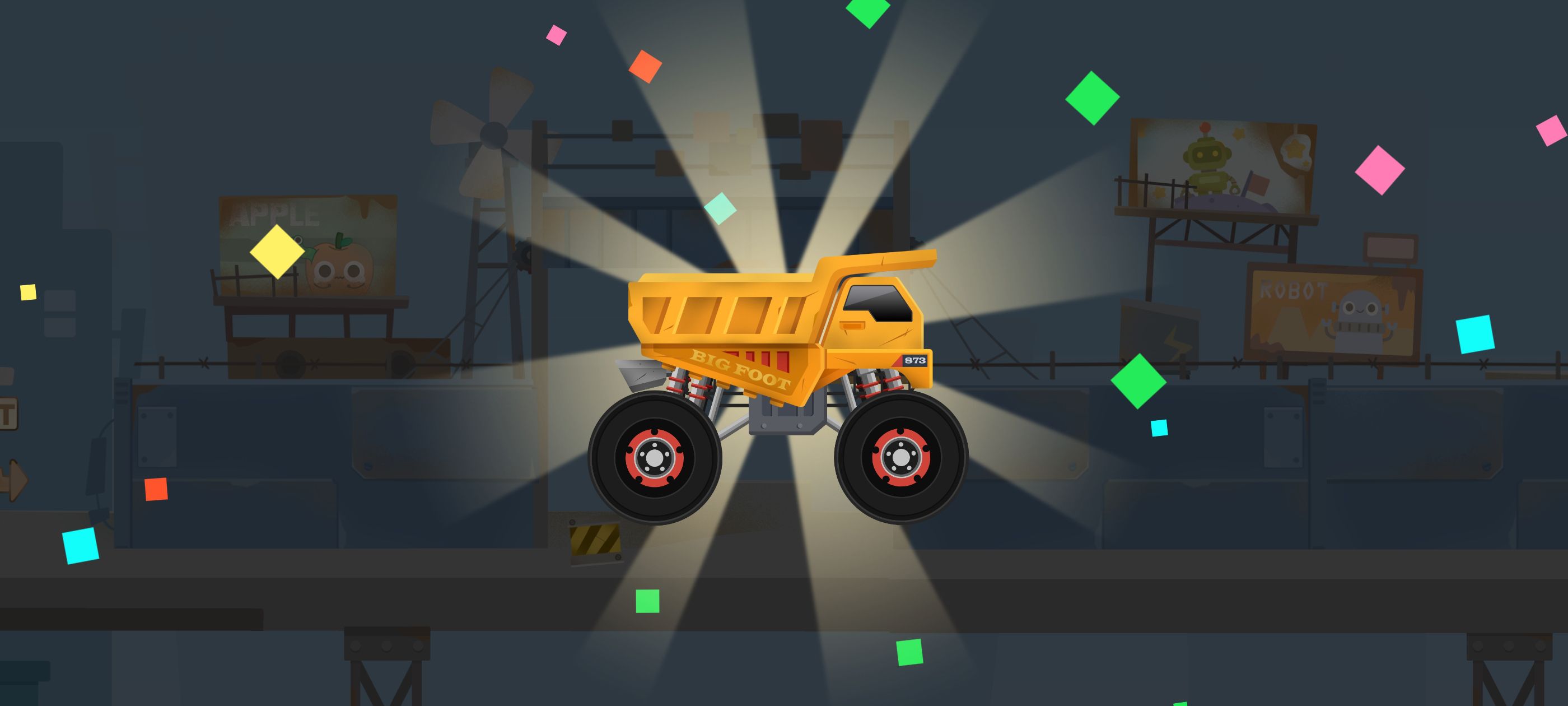 大脚车总动员2官方版是由 Yateland 设计的一款赛车竞速类手游,该游戏主要的面向目标人群为2-8岁的儿童,在这里你可以驾驶炫酷的大型卡车来完成多人竞速体验!超12款车型的丰富选择,10余种不同地图的地形探索,不仅有雪景、沙漠,城市干道,还是火山、美国西部,宇宙空间站等等,配合简单的操作控制,使得玩家更容易上手。
