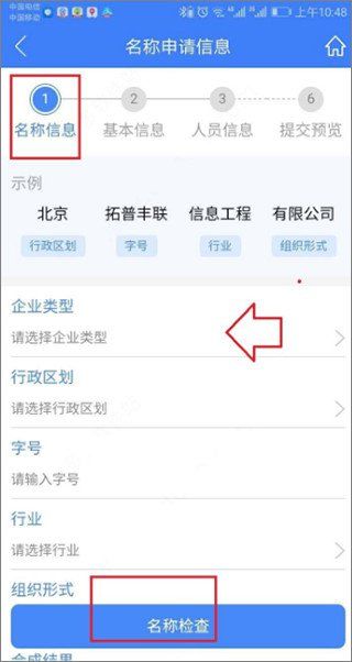 3、在弹出的界面当中,填写完名称信息之后点击名称检查,确认无误之后进入下一步。