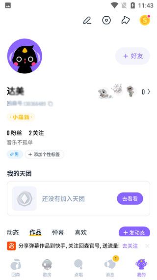 天团是森友们的社交小群组,加入天团可以遇到一群志同道合的新朋友,大家互唱弹幕、互送礼物、一起泡歌房……还可以参加丰富的天团活动赢取荣誉和奖励,比如天团PK赛、天团音乐节等