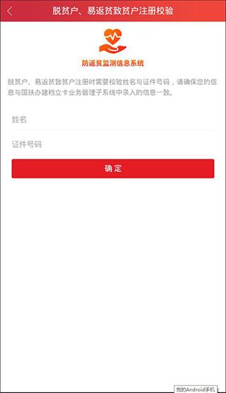 6、在脱贫户、易返贫致贫户页面,需要校验姓名与证件号码,确保您的信息与国扶办建档立卡业务管理子系统中录入的信息一致后,再按照指引即可完成注册。